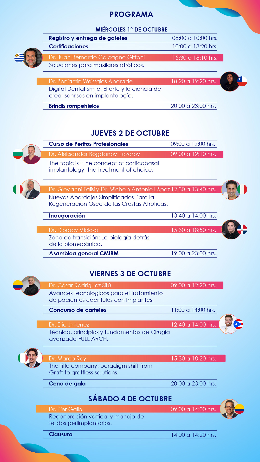 Congresso nazionale e internazionale organizzato dal Colegio Mexicano de Implantología Bucal y Maxilofacial. Si tratta di un evento focalizzato sull’implantologia orale e maxillofacciale, con conferenze di esperti nazionali e internazionali.